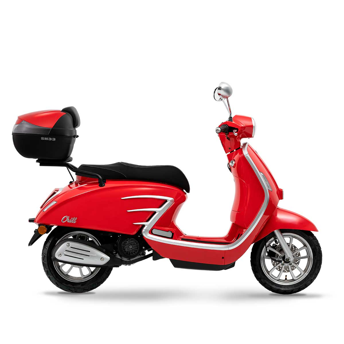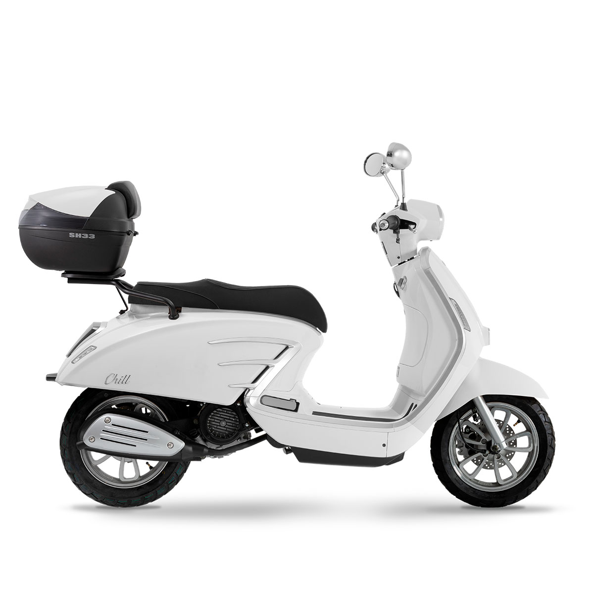 A Scooter Chill é o veículo ideal para o dia-a-dia na cidade. O seu baixo peso e agilidade permitem-lhe enfrentar o trânsito citadino com toda a confiança. As suas linhas clássicas com pormenores cromados combinadas com elementos modernos conferem-lhe um estilo próprio e não deixará ninguém indiferente.