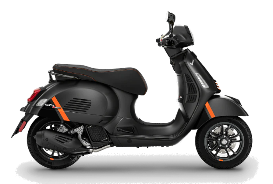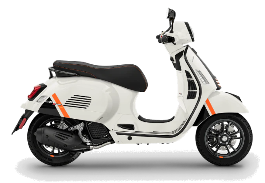 A Vespa GTS Super Sport é oferecida numa gama de cores brilhantes e mate, com inserções em carbon look e acabamentos em preto brilhante. Este é um modelo repleto de detalhes e grafismos desportivos, sendo o acabamento do banco fabricado em materiais de alta qualidade e com costura em cor contrastante.