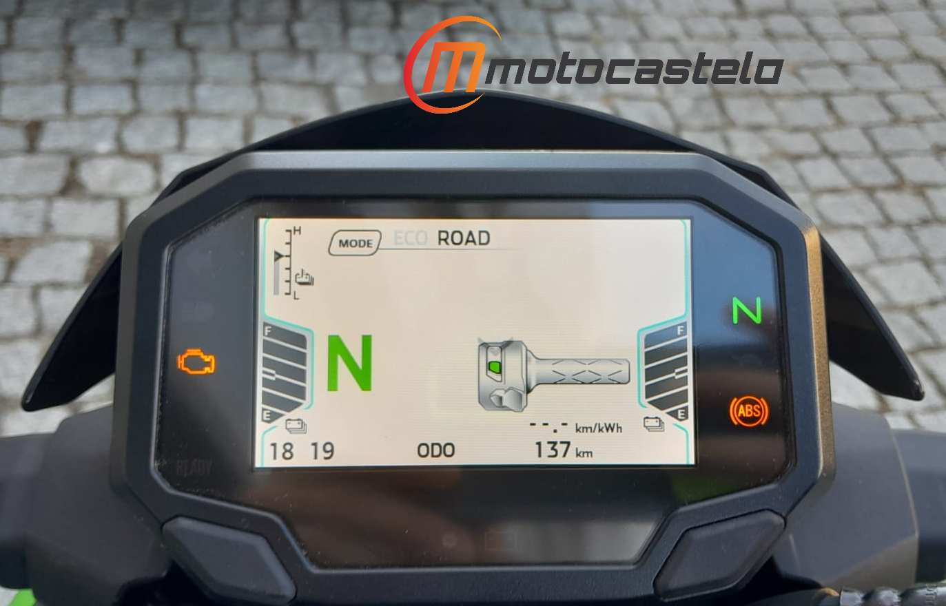 Modos de condução ECO, ROAD, e Wakl Mode (marcha-atrás) + E-Boost (descarga temporária de potência máxima).
